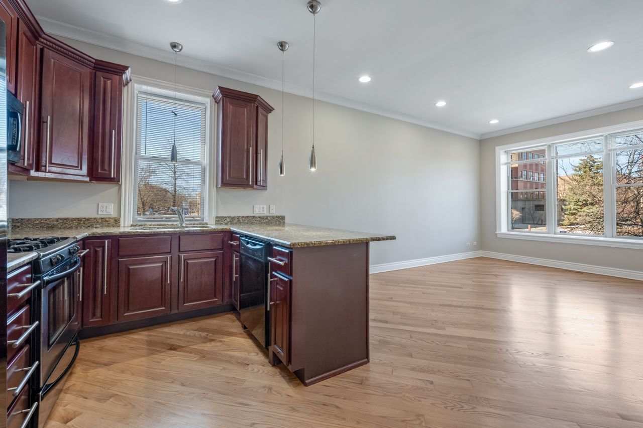 Spacious and move-in ready duplex-down offering approximately 1,700 square feet of comfortable living space! This well-maintained 3-bedroom, 2.1-bath condo features a flexible floor plan with freshly painted interiors throughout. The main level includes a bright living room, a well-appointed kitchen with 42 cabinetry, granite countertops, and a breakfast bar, plus a convenient powder room. The primary bedroom with a private full bath is also located on the main level. Newly refinished hardwood floors add warmth and character throughout this level. The lower level provides additional living space, perfect for relaxing or entertaining, along with two bedrooms featuring brand-new carpet, another full bathroom, and a laundry closet. Easy street parking and a convenient location close to dining, nightlife, and all that Humboldt park has to offer! Freshly painted and truly move-in ready! Investor friendly.